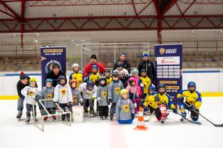 Děti se poté převlékly do hokejové výstroje a přesunuly se na připravenou ledovou plochu. Práce s dětmi na jednotlivých stanovištích byla velmi zábavná a na tvářích dětí byla znát velká spokojenost. Akce byla ukončena ukázkou dovedností nejmenších aktivních hráčů klubu a na úplný závěr všichni účastníci spokojenost dokumentovali na společné fotografii.